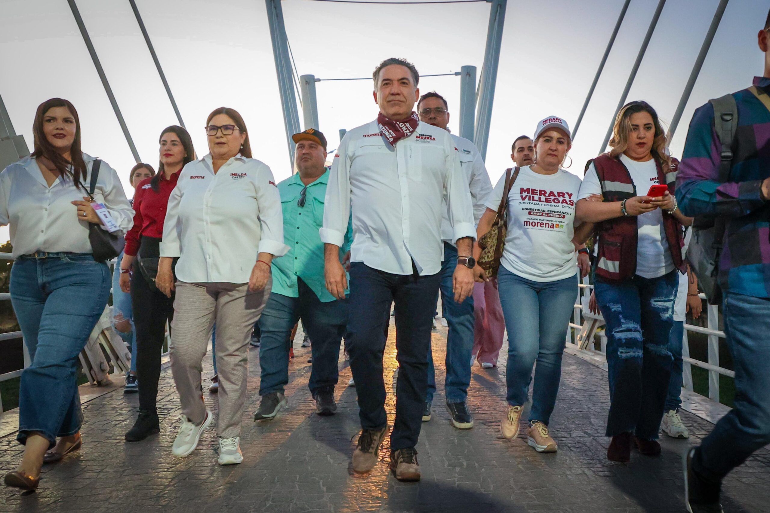 La candidata llegó a la cita con una puntualidad inglesa. Ya la esperaban María Teresa Guerra, Merary Villegas y Manuel Guerrero para mostrarle su apoyo. Posteriormente se sumaron otros candidatos de Morena a distintos puestos de elección popular, como Jesús Ibarra, Santana Palma y Serapio Vargas.