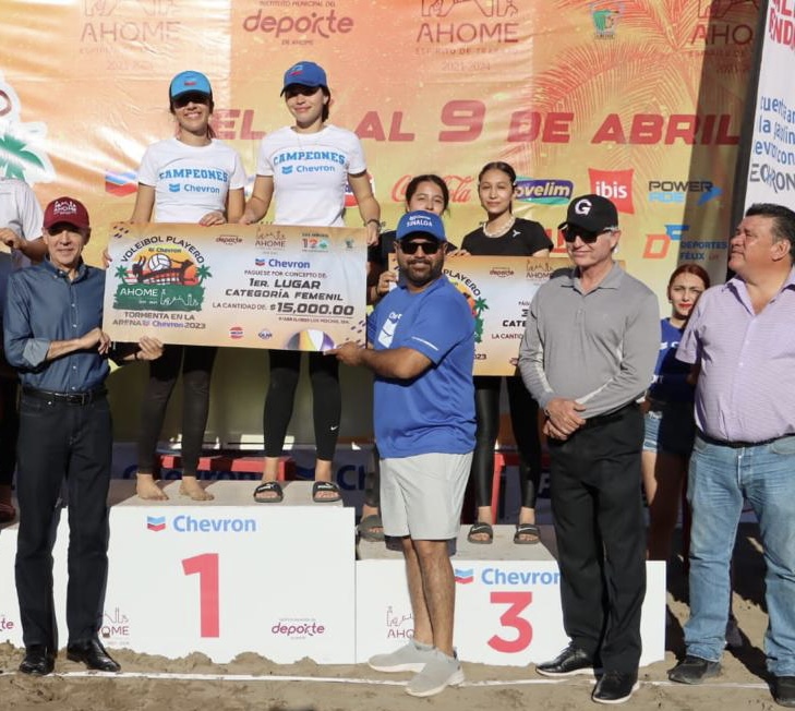 El Maviri, Ahome, domingo 9 de abril de 2023.- Con singular algarabía se llevó a cabo la premiación del Torneo de Voleibol Playero “Tormenta en la arena” en el Parque Las Ánimas de la Playa El Maviri, presidida por el Alcalde de Ahome Gerardo Octavio Vargas Landeros, quien tuvo a bien cumplir la palabra de aumentar la bolsa de premios a los ganadores.