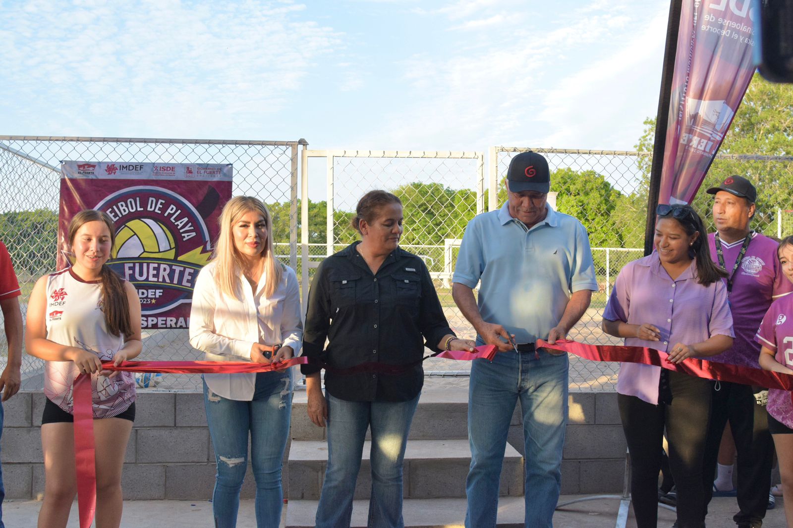 El Fuerte, Sinaloa, a 06 de octubre del 2023.- En cumplimiento a la petición jóvenes deportistas de la comunidad de Campo Esperanza, el Alcalde Gildardo Leyva Ortega hizo la entrega oficial de una cancha de arena para practicar Voleibol de Playa. Un sueño cumplido para el grupo de voleibolistas liderados por el profesor Rosario Gastelum.