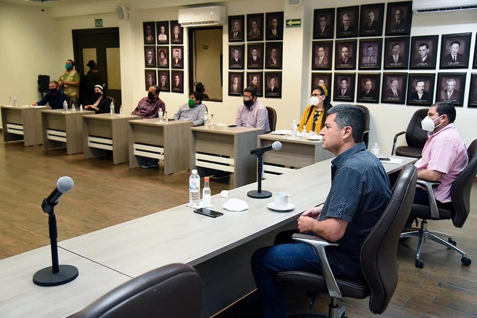 Los Mochis, Ahome, Sinaloa, 26 de Junio del 2020.- Con el objetivo de escuchar a los titulares de las diferentes áreas y departamentos que conforman el Gobierno Municipal, la mañana de este viernes el alcalde de Ahome, Manuel Guillermo Chapman Moreno sostuvo un encuentro de trabajo con ellos en el salón de cabildo, donde anunció que muy pronto regresarán las Brigadas Médicas.