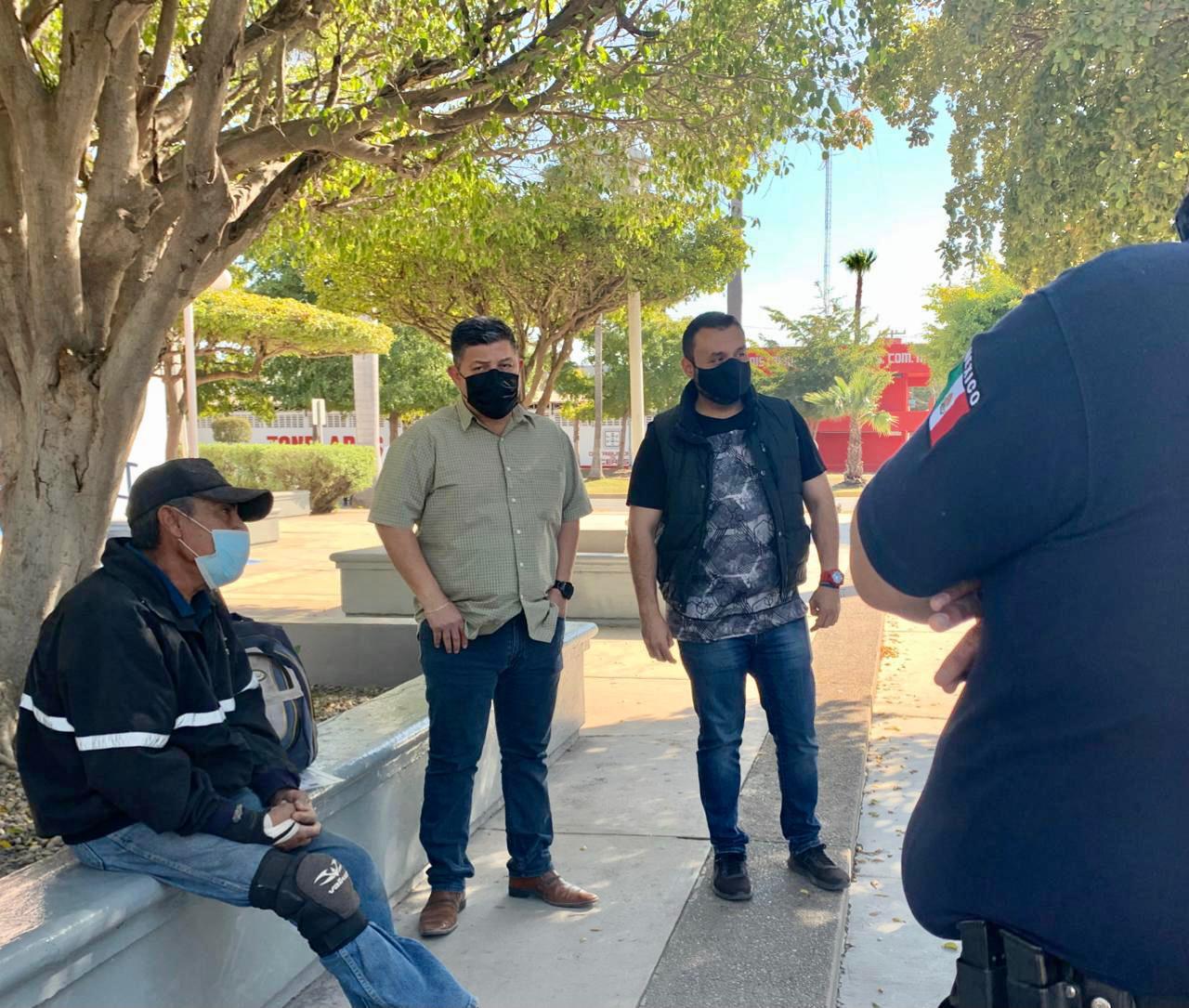 Los Mochis, Ahome, Sinaloa.-Tras recibir el reporte de una persona que se encontraba solicitando ayuda para regresar con su familia, personal del Ayuntamiento de Ahome, por indicaciones de la Presidenta Municipal Socorrito Calderón Guillén, este sábado por la tarde atendió el caso.