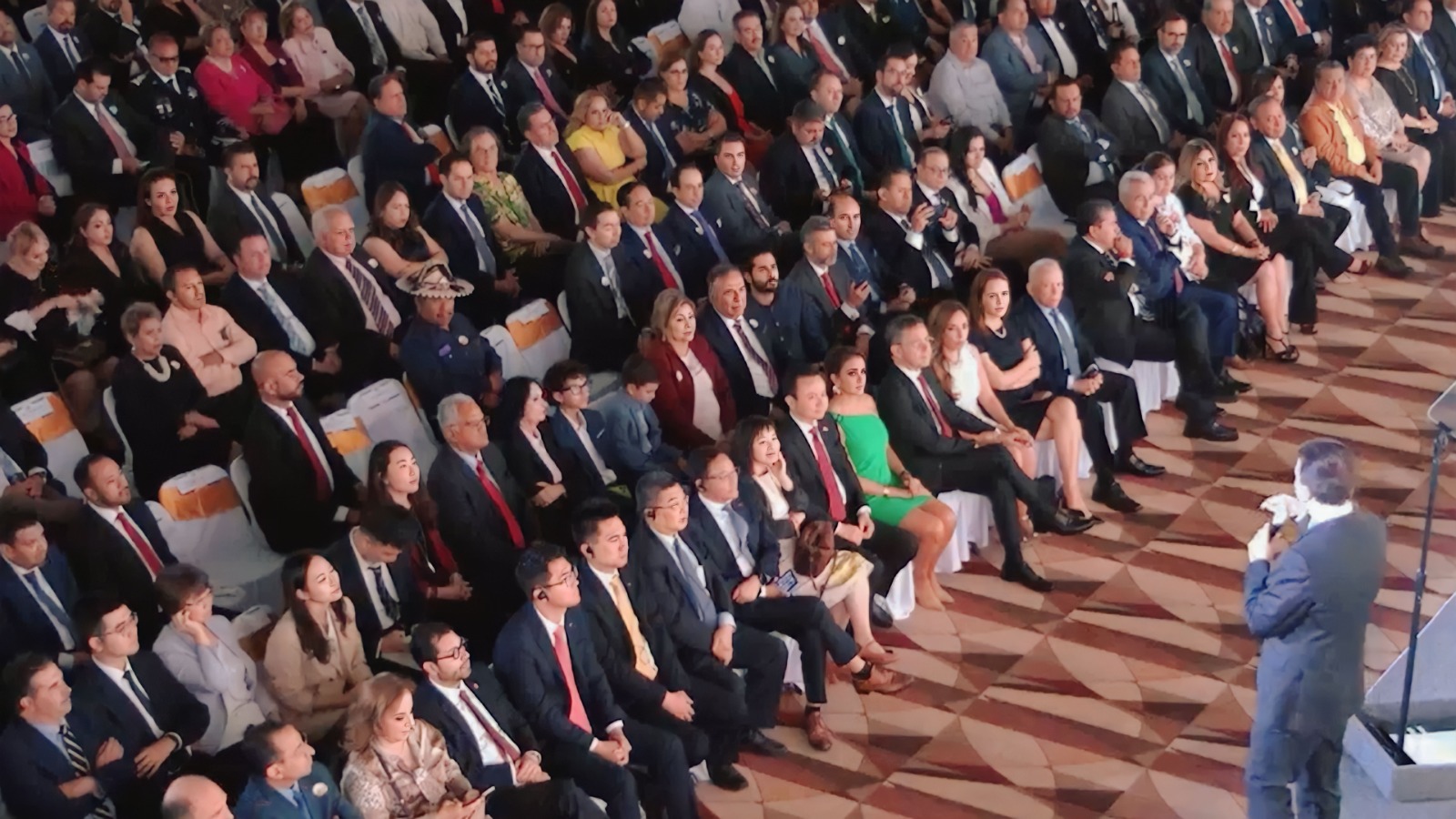 Durango, Durango; 02 de septiembre de 2023.- El gobernador de Sinaloa Rubén Rocha Moya asistió este sábado como invitado al Primer Informe de Actividades del mandatario estatal de Durango, Esteban Alejandro Villegas Villarreal, evento desarrollado en el Centro Cultural y de Convenciones Bicentenario en la capital del estado.