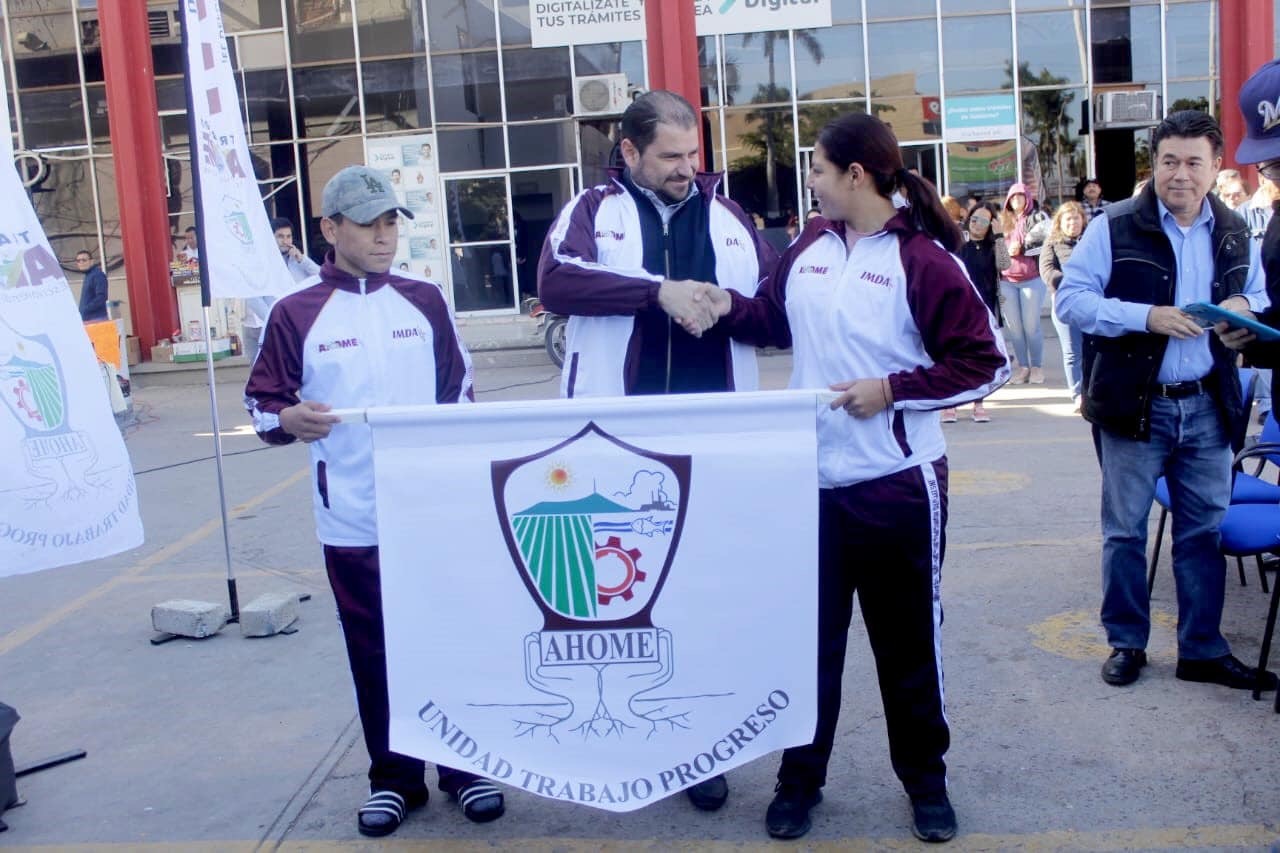 Los Mochis, Ahome, Sinaloa, 5 de Febrero del 2020.- Autoridades municipales hicieron entrega de uniformes y abanderaron a la Delegación de Ahome que participarán en la fase estatal de los Nacionales Conade.