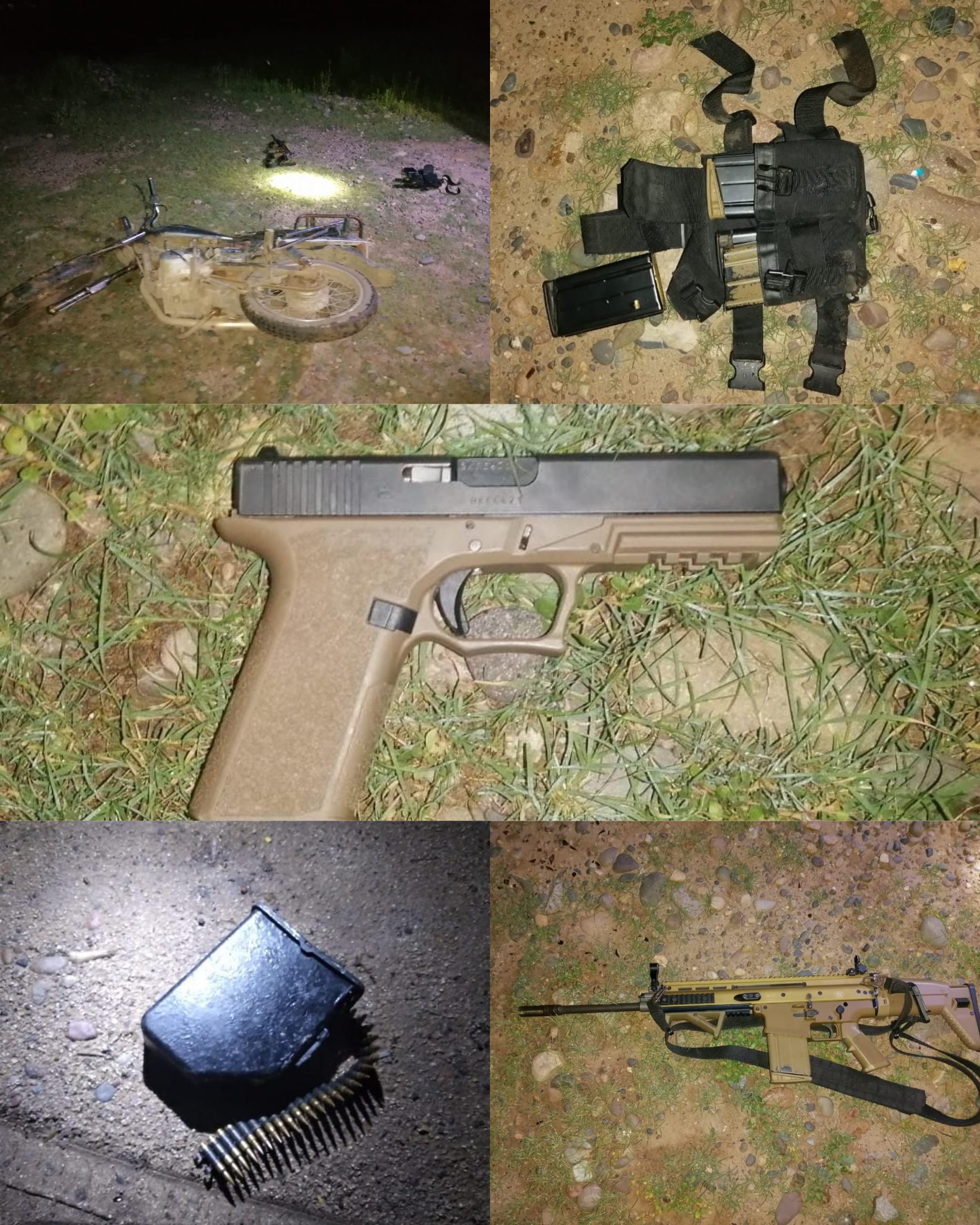 Culiacán, Sinaloa, 6 de agosto del 2021.- Integrantes de la Base de Operaciones Mixtas Urbanas (BOMU) asignada a la sindicatura de Tepuche, en Culiacán, aseguraron armas de fuego y una motocicleta, luego de una persecución.