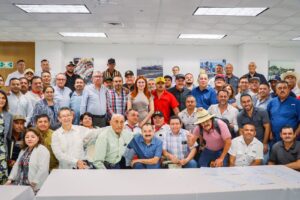 *Rubén Rocha Moya y Antonio Menéndez De Llano, junto con funcionarios de