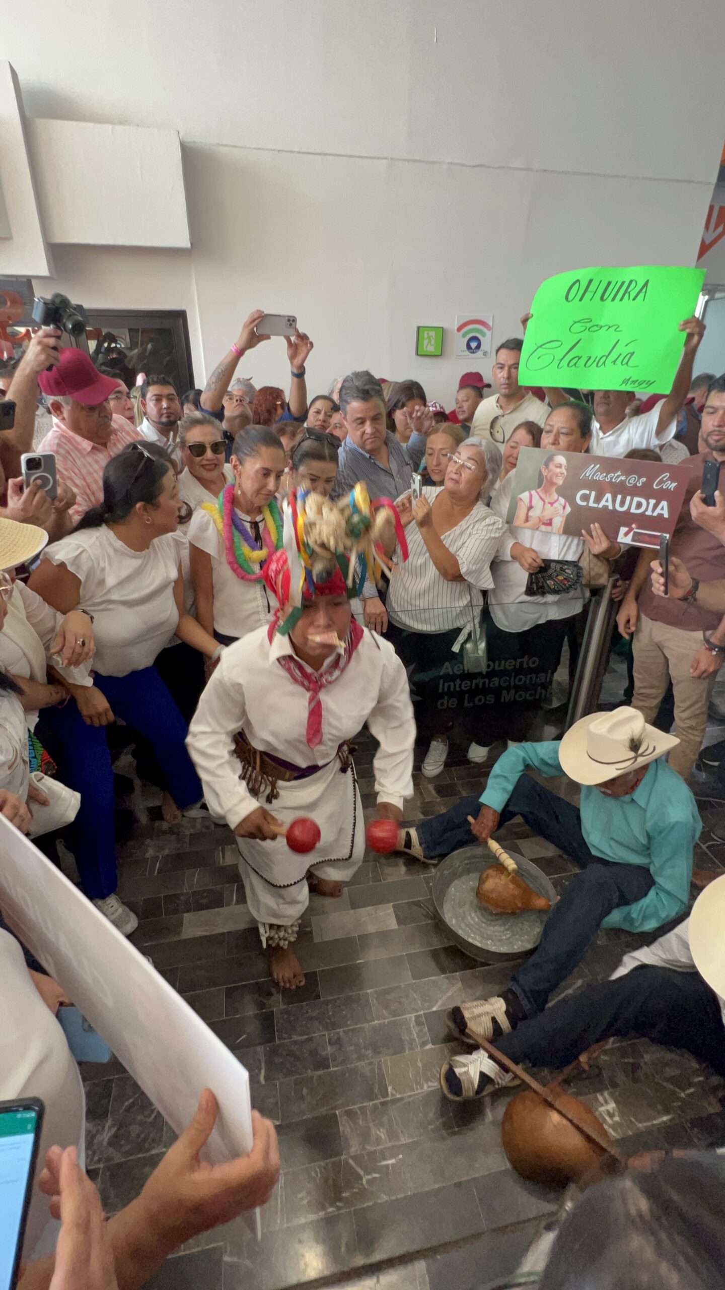 A su llegada al Aeropuerto Internacional de Los Mochis, Sheinbaum Pardo fue sorprendida por quienes la esperaban a su arribó con un collar de flores y con la tradicional danza del venado, la cual es un un legado ancestral de los pueblos originarios de la región.
