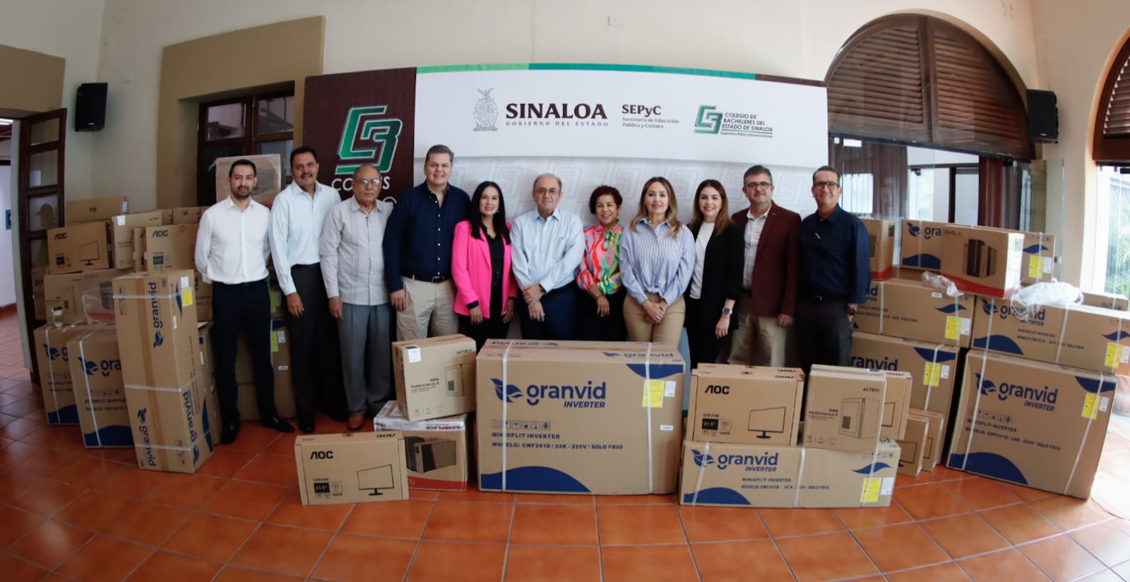 En este encuentro con los medios de comunicación se hizo entrega simbólica de 200 aires acondicionados, compromiso que hizo el gobernador de Sinaloa cuando inauguró el ciclo escolar en el plantel 24 “General Emiliano Zapata” el pasado 30 de agosto; además con recursos propios del Colegio se adquirieron 290 equipos de cómputo de última generación, 428 kits de actualización y 120 proyectores multimedia, los cuales se distribuirán en los 128 planteles.