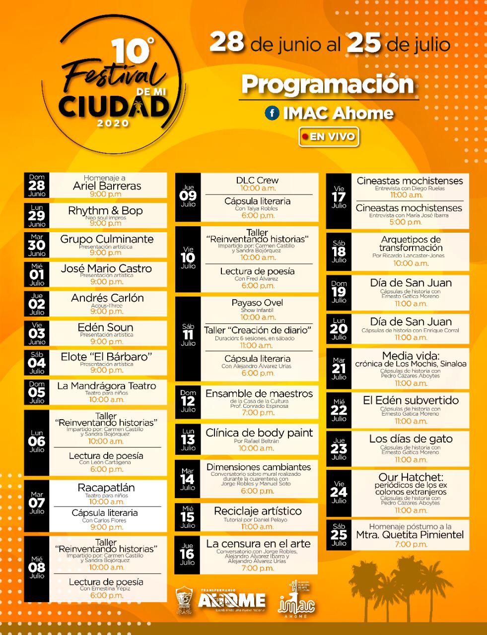 Con más de 35 actividades que reúnen: teatro, música, poesía, historia, cine, cápsulas literarias, y de una manera muy especial un homenaje póstumo a la maestra Quetita Pimentel, esta mañana se dio a conocer en rueda de prensa vía Facebook Live la cartelera de actividades que darán vida a la edición número 10 del Festival de Mi Ciudad 2020, que se realizará del 28 de junio al 25 de julio.
