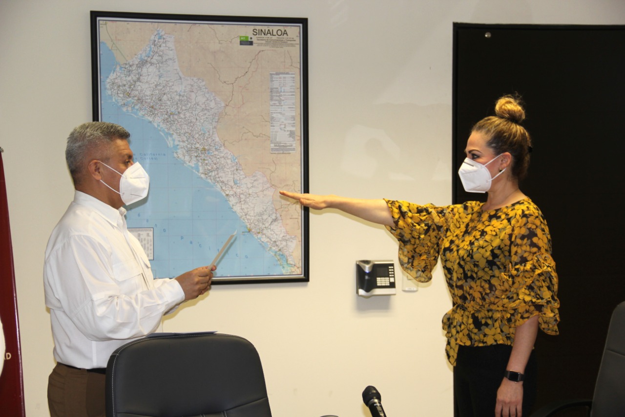 Culiacán, Sinaloa, 2 de junio de 2020.- El Secretario de Seguridad Pública de Sinaloa, Cristóbal Castañeda Camarillo, tomó protesta a la Lic. Maribel Chollet Morán como nueva titular de la Dirección de Programas Preventivos de la dependencia.