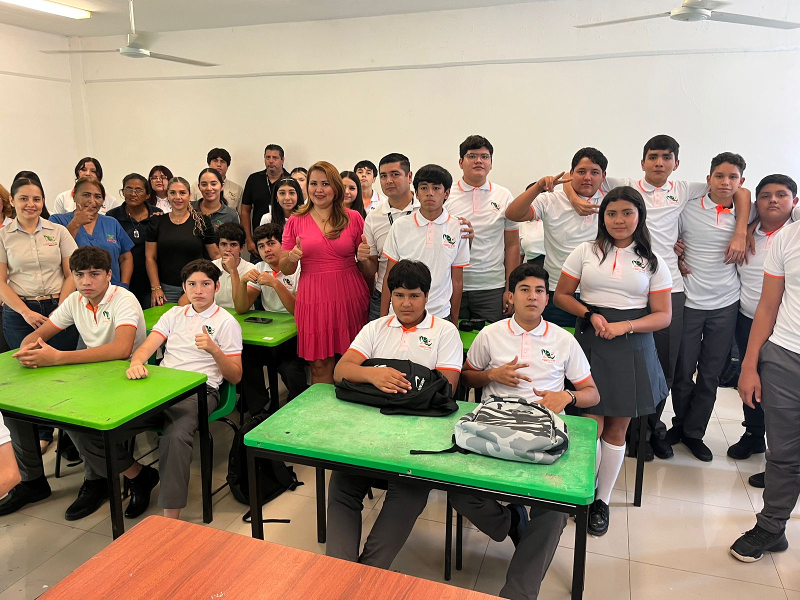 Dicha bienvenida se llevó a cabo en el plantel de Ciudad Educadora Sustentable y del Saber, en donde exhortó a los jóvenes a dar su mejor esfuerzo en el estudio para lograr las metas de que estudiantes obtengan premios a nivel estatal y nacionales.