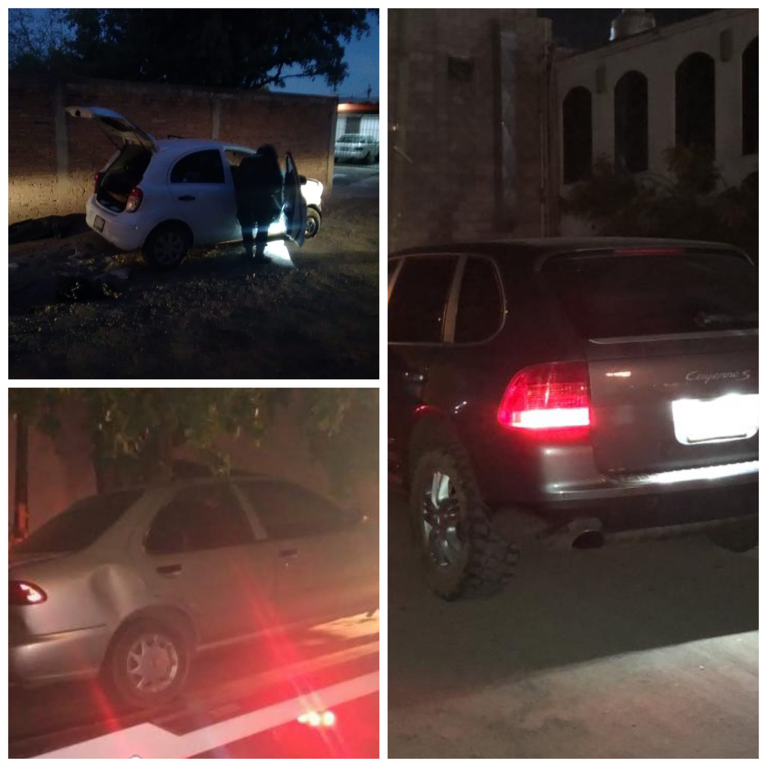 En un tercer hallazgo, los elementos de la Estatal Preventiva efectuaban recorridos de vigilancia por la sindicatura de Bachigualato y, al circular por la Calzada Aeropuerto en la colonia Altos de Bachigualato, observaron un vehículo mal estacionado y en aparente estado de abandono, por lo que fue revisado. Se encontró que la unidad marca Porshe, línea Cayenne con placas de circulación americanas del estado de California, contaba con reporte de robo, por lo que se procedió conforme a la ley.