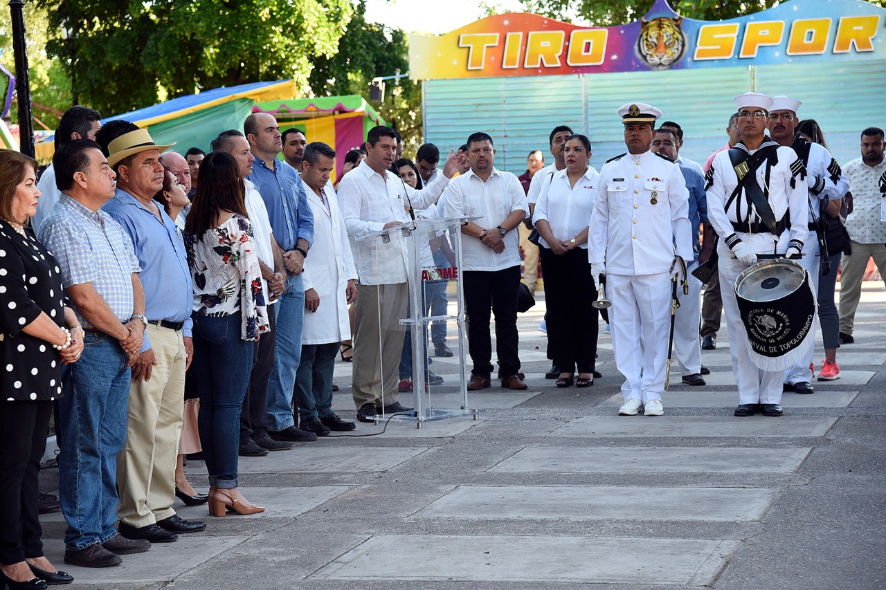 Ambas ceremonias estuvieron engalanadas con la participación de las escoltas y bandas de guerra del Sector Naval de Topolobampo, 89 Batallón de Infantería y de la Policía Municipal de Ahome.