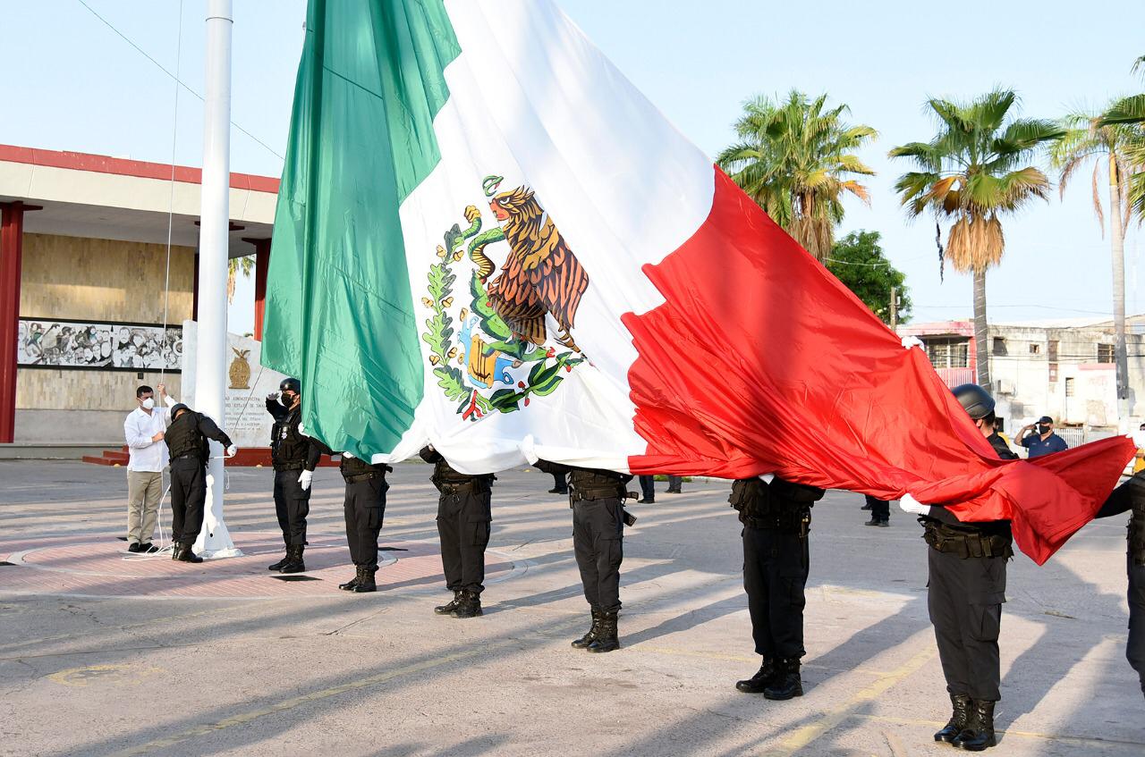 El acto cívico se llevó a cabo bajo los protocolos de la nueva normalidad, por lo que se tuvo poca afluencia para evitar aglomeraciones, donde también se contó con la participación de la Escolta de la Dirección General de Seguridad Pública y Tránsito Municipal.