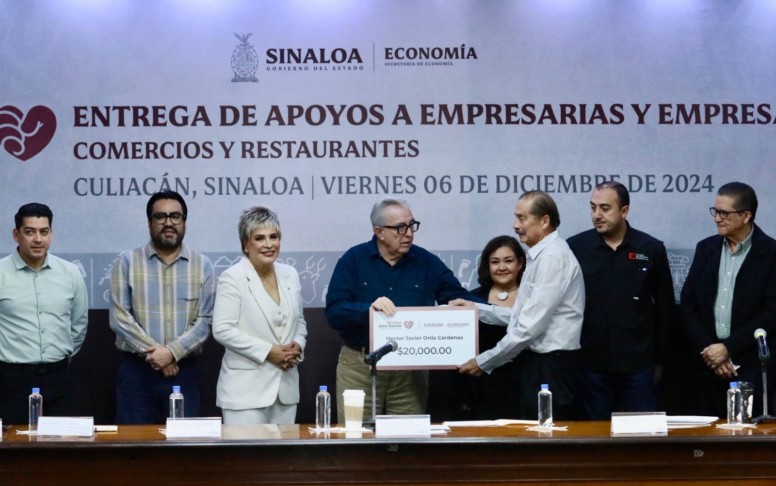 Culiacán, Sinaloa, a 06 de diciembre de 2024.- Con el propósito de apoyar a los pequeños comerciantes y reactivar la economía local, el gobernador Rubén Rocha Moya inició con la entrega de apoyos directos del Programa Económico Emergente “Sinaloa Late Fuerte”, de la Secretaría de Economía, que contempla una bolsa de 62.5 millones de pesos, de los cuales, 42.5 millones se destinarán a la entrega gratuita de apoyos de 5 mil, 10 mil y 20 mil pesos a comerciantes vulnerables, y los restantes 20 millones de pesos, a créditos de 50 mil pesos a Mipymes, sin intereses, con los primeros seis meses de gracia y pagaderos a un plazo de dos años.