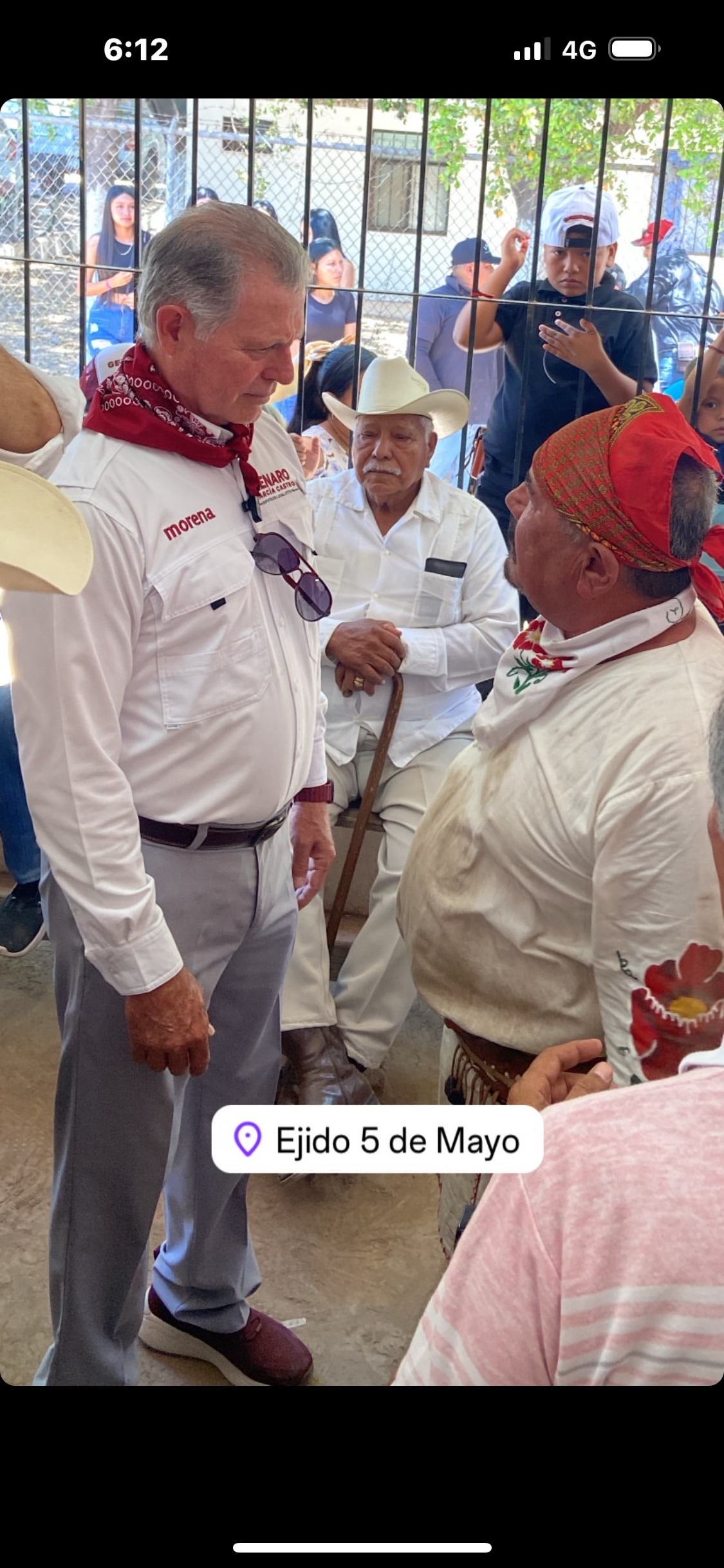 El candidato de morena a la diputación local por el Cuarto Distrito Electoral, Genaro García Castro regresó al ejido 5 de Mayo para compartir el pan y la sal, a invitación de ejidatarios, mayos yoremes y avecindados.