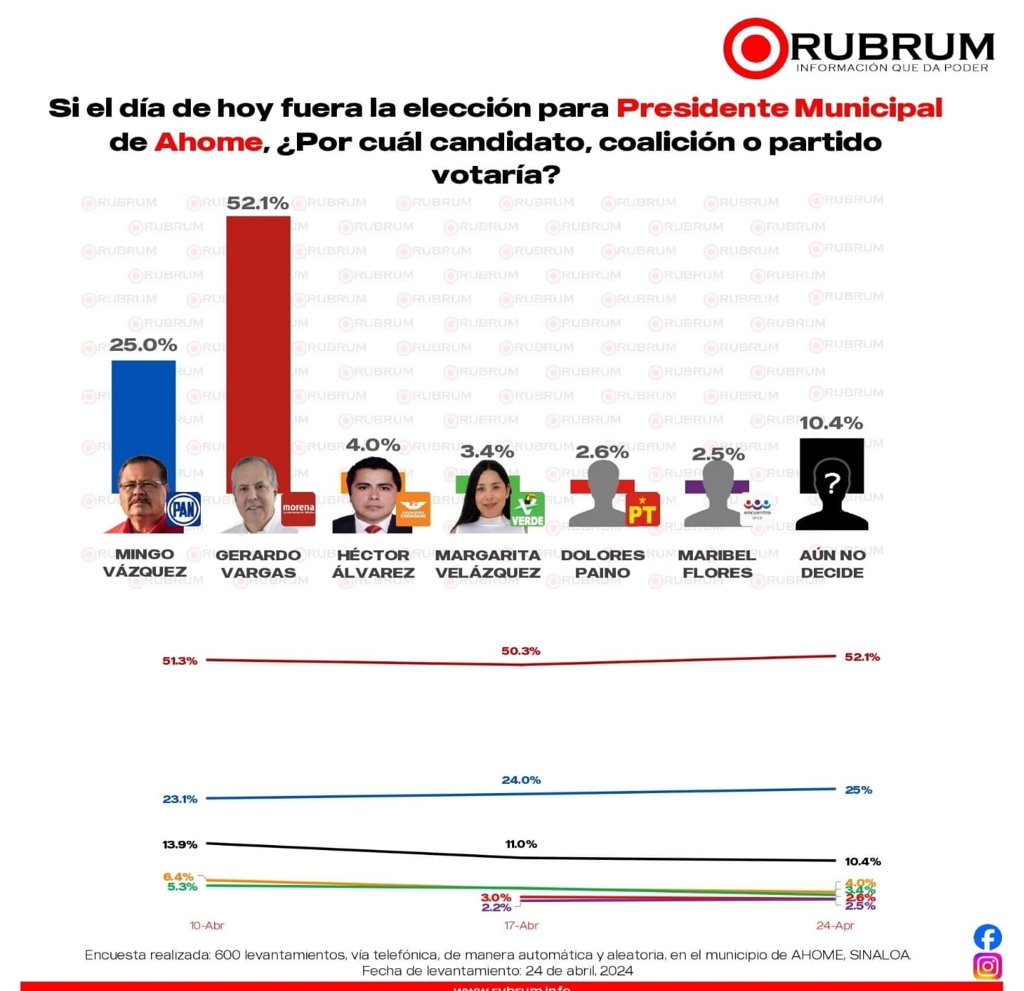 Estos resultados posicionan a Gerardo Vargas Landeros como el líder claro en la contienda por la alcaldía de Ahome, mostrando una sólida base de apoyo entre la población.