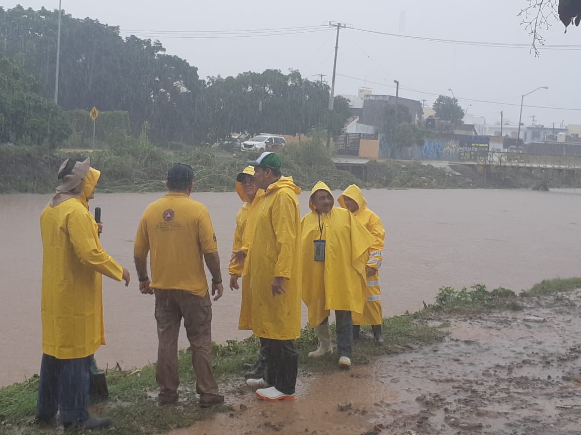 En su recorrido, Osbaldo López Angulo constató que el arroyo Jabalines, obra que fue recientemente revestida en una etapa y además dragada, ayudó a mitigar el impacto de las inundaciones gracias a los trabajos emprendidos, pero los monitoreos se mantienen, aun y cuando hasta esta tarde todo se encuentra bajo control, ya que no se han presentado pérdidas mayores.