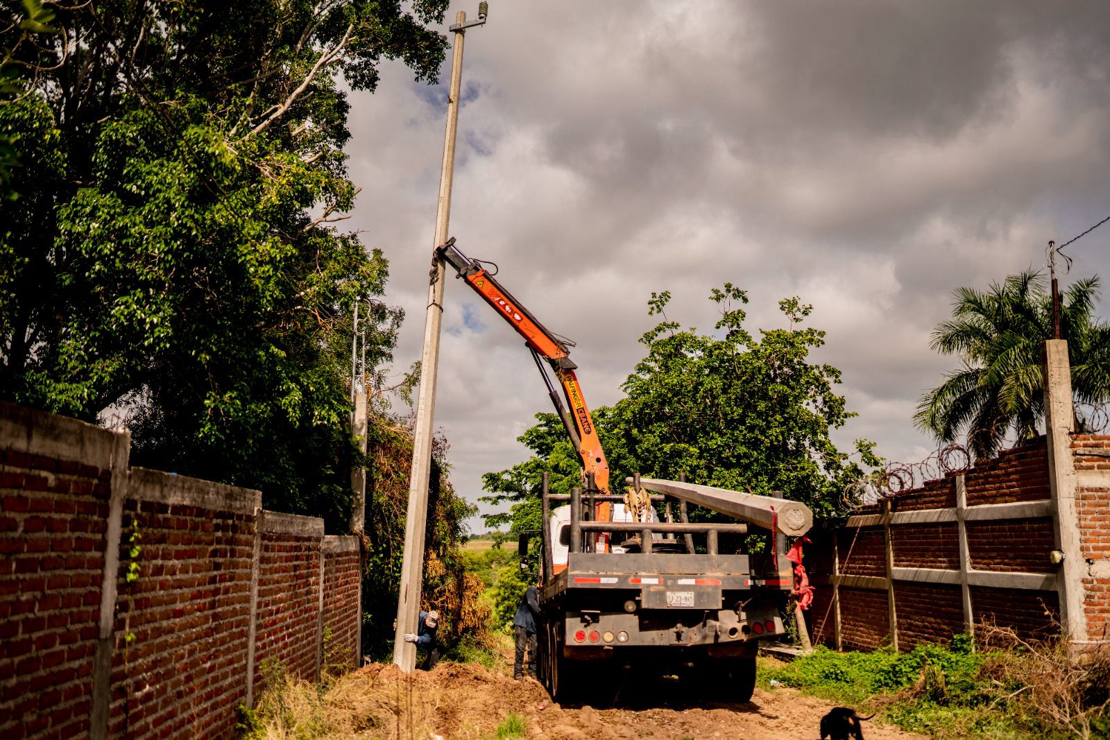 *Culiacán, Sinaloa, 19 de octubre de 2023*.- El Secretario de Obras Públicas de Gobierno del Estado, Joaquín Landeros Güicho acudió junto con el alcalde, Juan de Dios Gámez Mendívil a poner en marcha la ampliación de la red de distribución eléctrica en el ejido Las Milpas 2 de la sindicatura de Costa Rica.