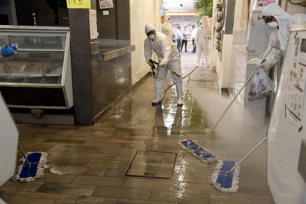 Las acciones de limpieza y desinfección a fondo, iniciaron la tarde de este viernes en el Mercadito Independencia de Los Mochis, aprovechando la hora del cierre del centro de abastos y no entorpecer las actividades comerciales.