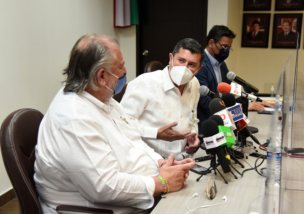Los Mochis, Ahome, Sinaloa, 29 de Septiembre del 2020.- El Presidente Municipal Manuel Guillermo “Billy” Chapman, ofreció este martes conferencia de prensa para informar la visita del Vicepresidente del Grupo Vidanta Mayan Resort, Carlos Mora Álvarez, quien acudió para invitar al alcalde ahomense al Encuentro Nacional de Turismo 2020 los días 18 y 19 de noviembre en la ciudad de Tijuana, Baja California.