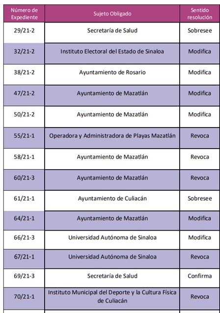 En la Sesión de Pleno también fueron aprobados 35 acuerdos sobre resoluciones de recursos de revisión, 19 de cumplimiento, 11 incumplimientos y 5 desechamientos.