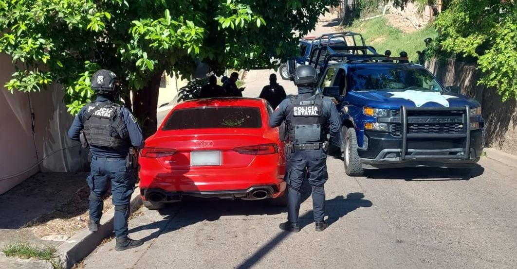 Culiacán, Sinaloa, 10 de noviembre de 2023.- Elementos de la Policía Estatal Preventiva lograron la ubicación y aseguramiento del vehículo Audi robado el jueves en Culiacán.