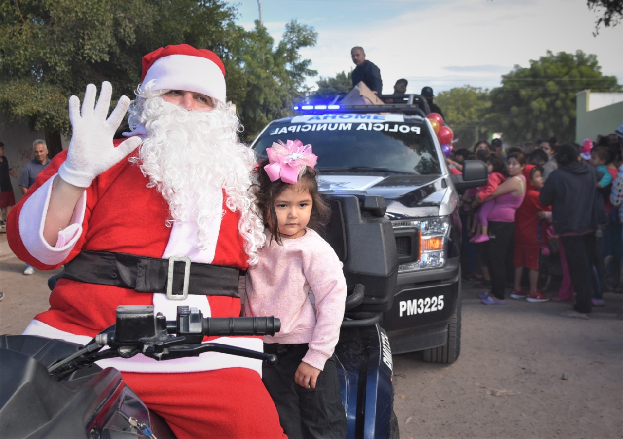La caravana partió de los patios de Seguridad Pública; eran varias patrullas que seguían una cuatrimoto conducida por Santa Claus, a su paso por las calles de la ciudad niños y adultos saludaban al grupo que llevaría alegría a los más necesitados.