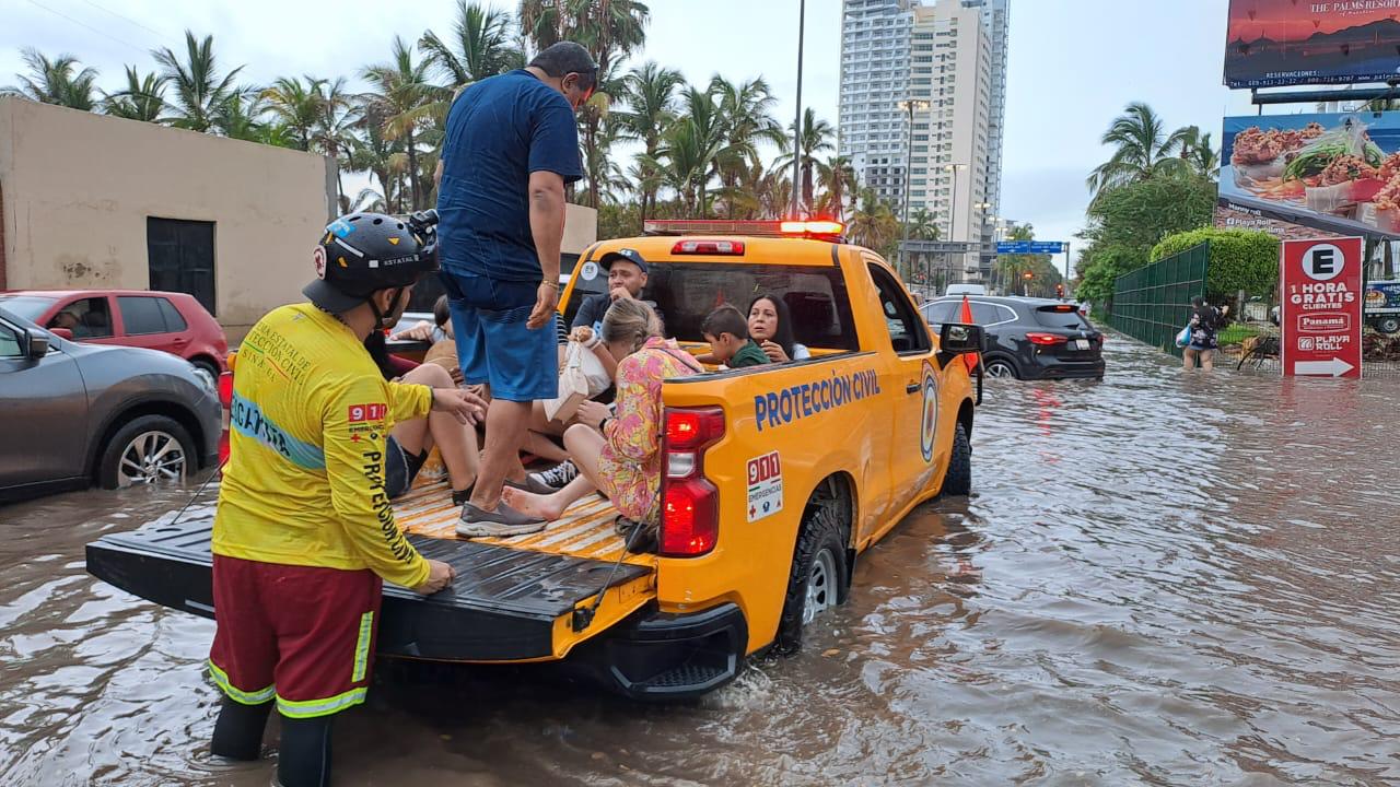 Entre los municipios más afectados se encuentra Mazatlán, donde debido a la acumulación de cuerpos de agua en las principales avenidas del puerto fue necesario auxiliar a diversas familias en sus traslados a sus destinos, además de atender emergencias de vehículos que cayeron a canales.