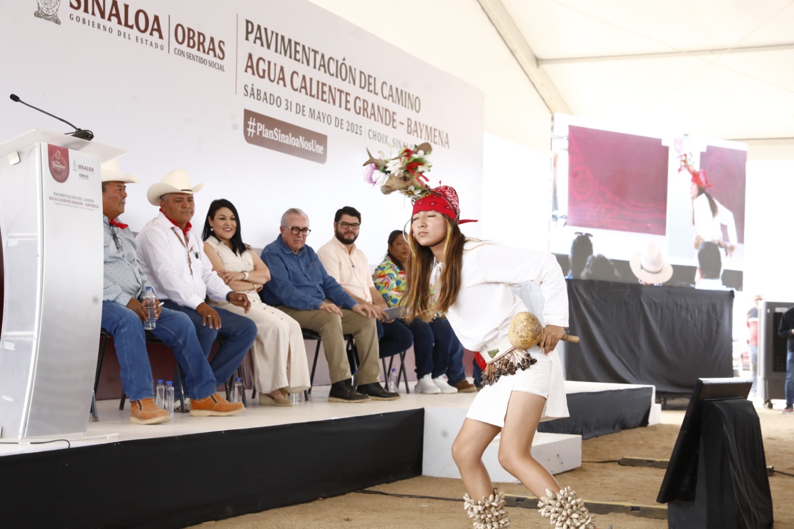 Aguacaliente Grande, Choix, Sinaloa, a 31 de mayo de 2025.- Al poner en marcha los trabajos de construcción de la carretera de Aguacaliente Grande a Baymena, en el municipio de Choix, el gobernador Rubén Rocha Moya destacó que su propósito es distribuir el beneficio social en todo el estado, especialmente llevar el desarrollo a comunidades indígenas como Baymena, donde sus pobladores tienen el mismo derecho de vivir en condiciones dignas con una mejor calidad de vida.
