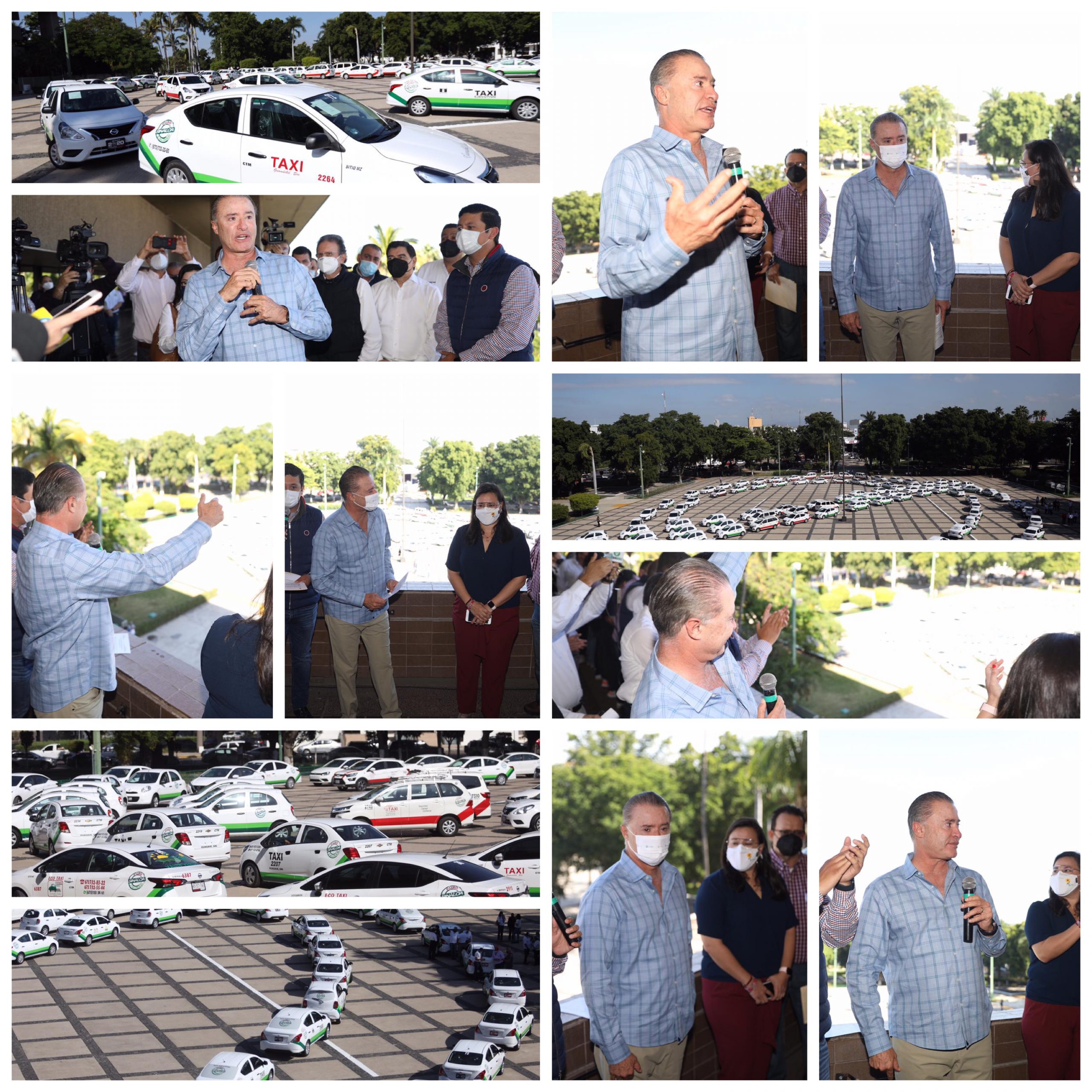 En su intervención, el director de Vialidad y Transportes, Feliciano Valle Sandoval, explicó que se distribuirán 40 vehículos en Culiacán, 20 taxis rojos y 20 verdes para Mazatlán, 9 en Guamúchil, 3 en Guasave y 8 en Los Mochis.