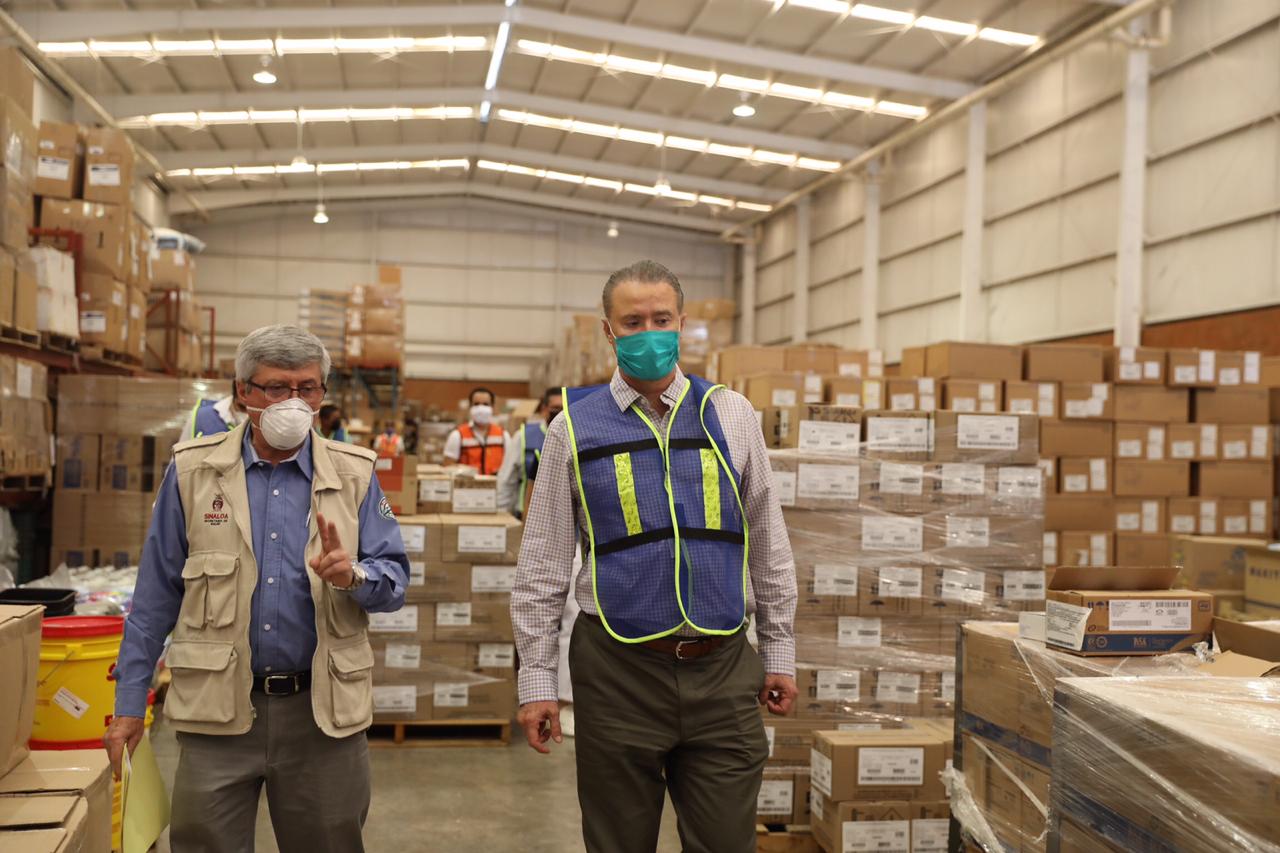Acompañado por el secretario de Salud, Efrén Encinas Torres; por su esposa Rosy Fuentes de Ordaz, y el empresario Adrián Coppel, el mandatario estatal visitó el Centro Logístico de los Servicios de Salud de Sinaloa, ubicado en el Campo El Diez, desde donde se surtirá este material médico adquirido mediante la inversión extraordinaria de 85 millones de pesos que anunció hace 10 días, así como de alrededor de seis mil artículos diversos, como cubrebocas, batas, guantes, toallas antisépticas, los desfibriladores y equipos de rayos X que fueron donados por el Grupo Coppel.