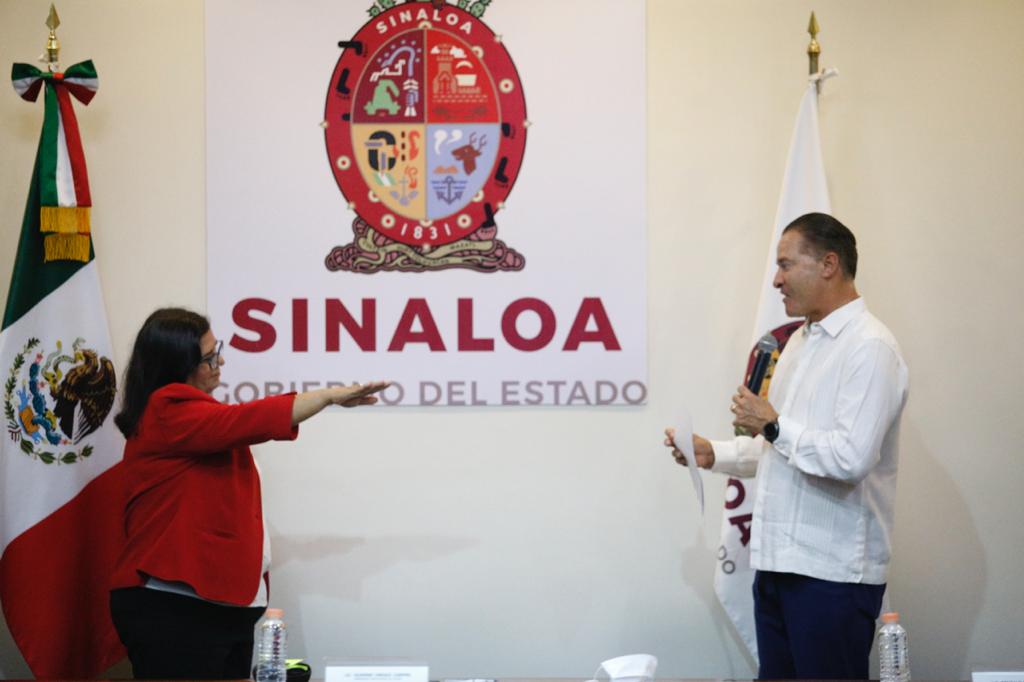 Culiacán, Sinaloa; 18 de septiembre de 2020.- El gobernador de Sinaloa, Quirino Ordaz Coppel le tomó la protesta de ley a Laura del Carmen González Bon como titular del Instituto Sinaloense de las Mujeres (ISMUJERES), de quien vaticinó un gran trabajo a favor de las mujeres, implementando políticas públicas que permitan reforzar la lucha contra la violencia y discriminación de este sector, mismo que catalogó como el más importante.