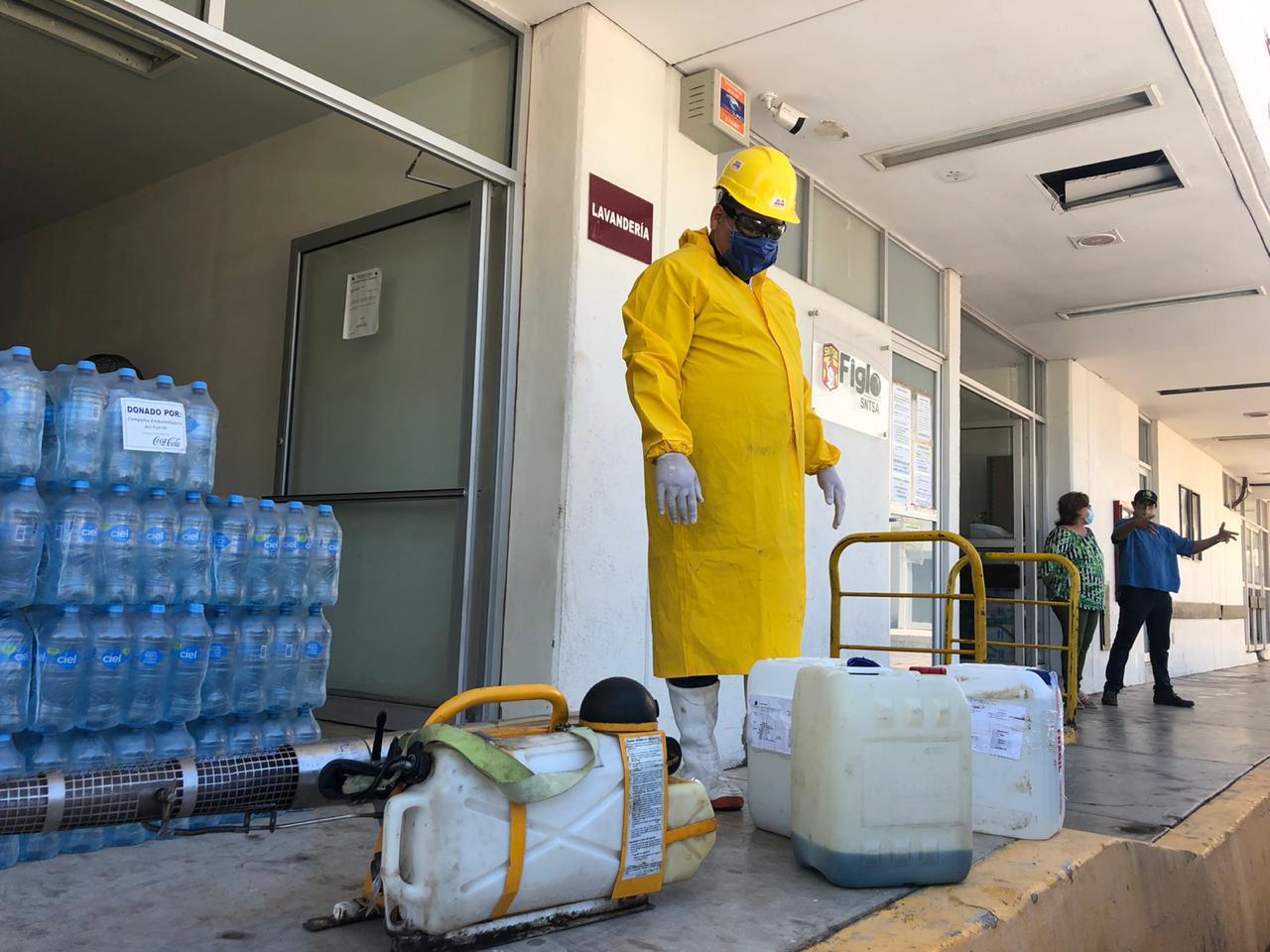 “Continuamos con el apoyo que se está dando al Hospital General, en esta ocasión está nuestro personal para realizar una fumigación, interna y externa del hospital contra insectos de todo tipo, y además de eso se está entregando también 180 litros de agua embotellada que nos hizo el favor de donar la compañía Coca Cola, está donación de agua le corresponden 180 litros al Hospital General, otros tanto de 180 litros al ISSSTE y aproximadamente 200 o 220 litros a la clínica 49 del Seguro Social”, informó Espinoza Valverde.