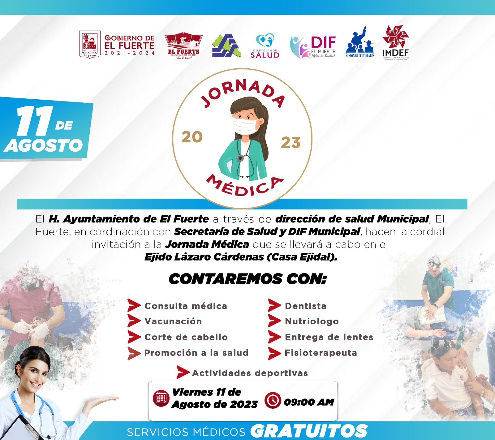 El día viernes 11 de agosto se llevará a cabo esta actividad, llevando servicios médicos totalmente gratuitos a la comunidad.