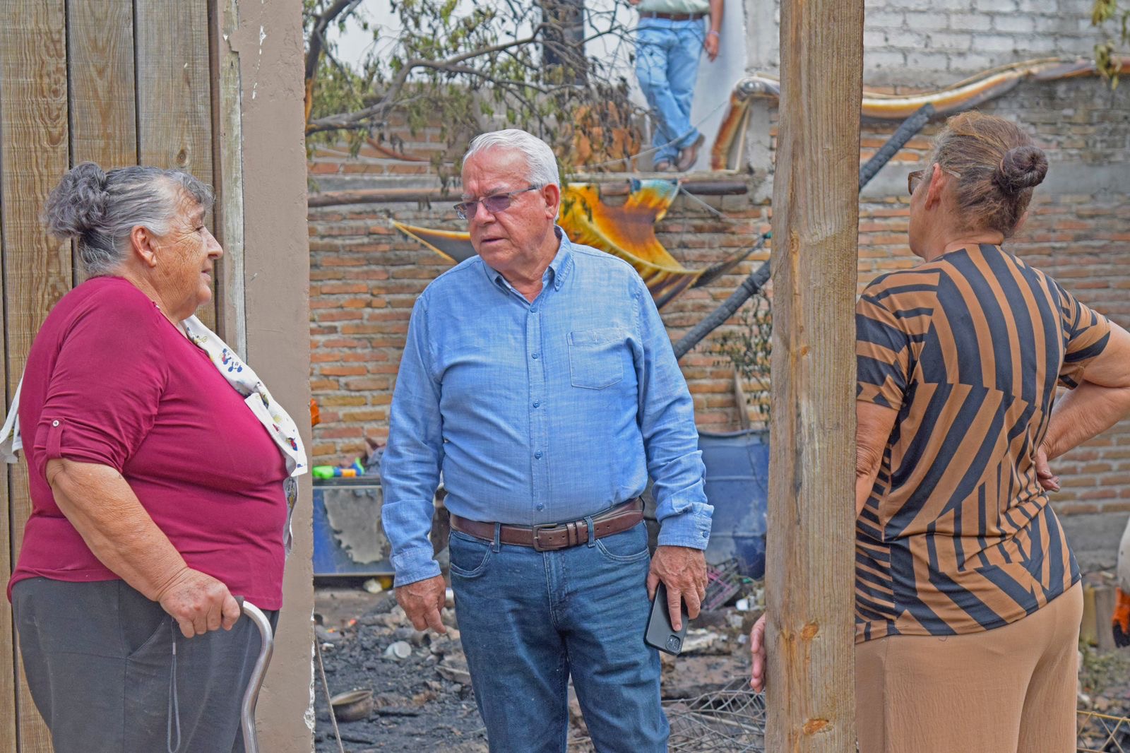 El Fuerte, Sinaloa, a 17 de abril del 2024.- En respuesta al incendio ocurrido el día de ayer por la tarde en la colonia Pablo Macías Valenzuela, el Alcalde José María Flores Soto, acompañado del personal de servicios públicos, se presentó en el domicilio de Rosario Estela Gutiérrez Montañez, ubicado en la calle Rafael Buelna Tenorio. A pesar de que el siniestro solo causó pérdidas materiales, la Sra. Gutiérrez Montañez lamenta la pérdida total de su vivienda y pertenencias, desconociendo aún las causas del incendio.