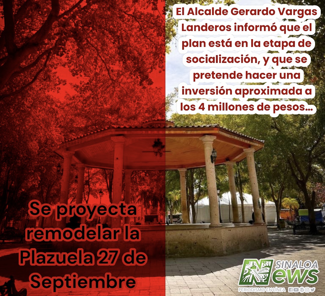 Los Mochis, Ahome, Sinaloa, a 11 de Marzo del 2023.- El Presidente Municipal Gerardo Octavio Vargas Landeros, informó que se está trabajando en un proyecto de renovación de la emblemática Plazuela 27 de Septiembre, para que la gente de la ciudad de Los Mochis, el Municipio Ahome, y los visitantes, disfruten de un espacio digno como lo merece la población.