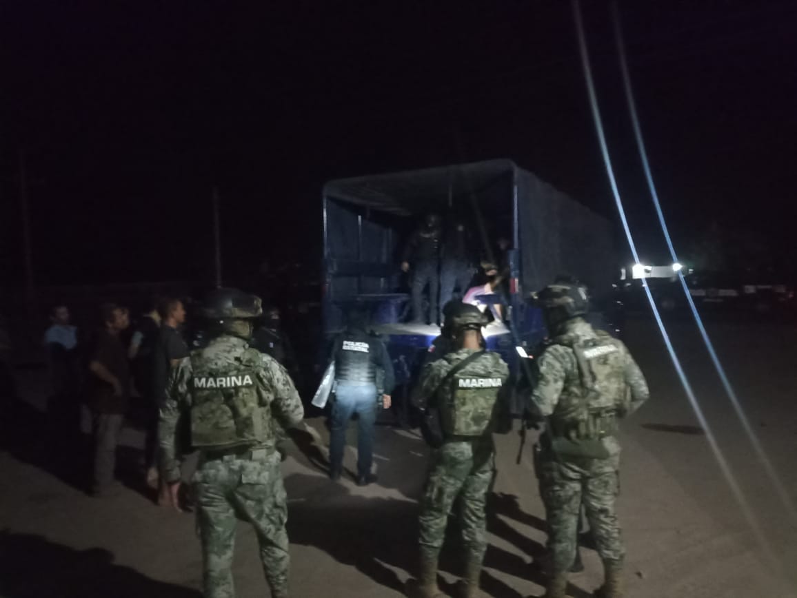 Culiacán, Sinaloa, 15 de julio de 2023.- Tras un reporte ciudadano sobre personas que tenían retenidas contra su voluntad en un centro de rehabilitación donde presuntamente los obligaban a trabajar en campos agrícolas y camaroneros, elementos de la Secretaría de Marina Armada de México y la Policía Estatal Preventiva rescataron a 39 civiles y aseguraron a tres en la Reforma, Angostura.