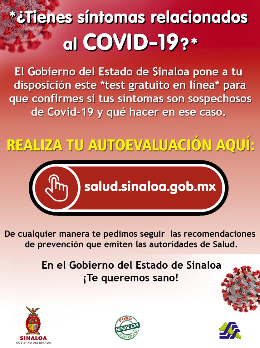 Detalló que, se trata de un “auto test”, el cual permitirá mantener informada a toda la población acerca del COVID – 19, sobre todo en cuanto a la preocupación de que si portan o no la enfermedad, pues este se encontrará disponible en línea en la página; www.salud.sinaloa.gob.mx.