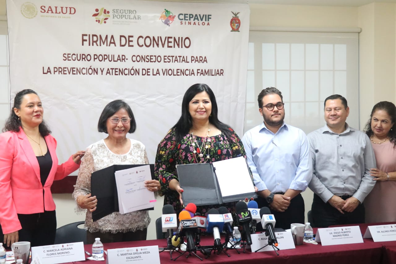 Culiacán Sinaloa, a 1 de Julio del 2019.- Aportando a la política a favor de los grupos vulnerables del Gobernador, Quirino Ordaz Coppel, Seguro Popular y el Consejo para la Prevención y Atención de la Violencia Intrafamiliar (CEPAVIF) firmaron convenio de colaboración para brindar cobertura médica a sectores en situaciones de riesgo.