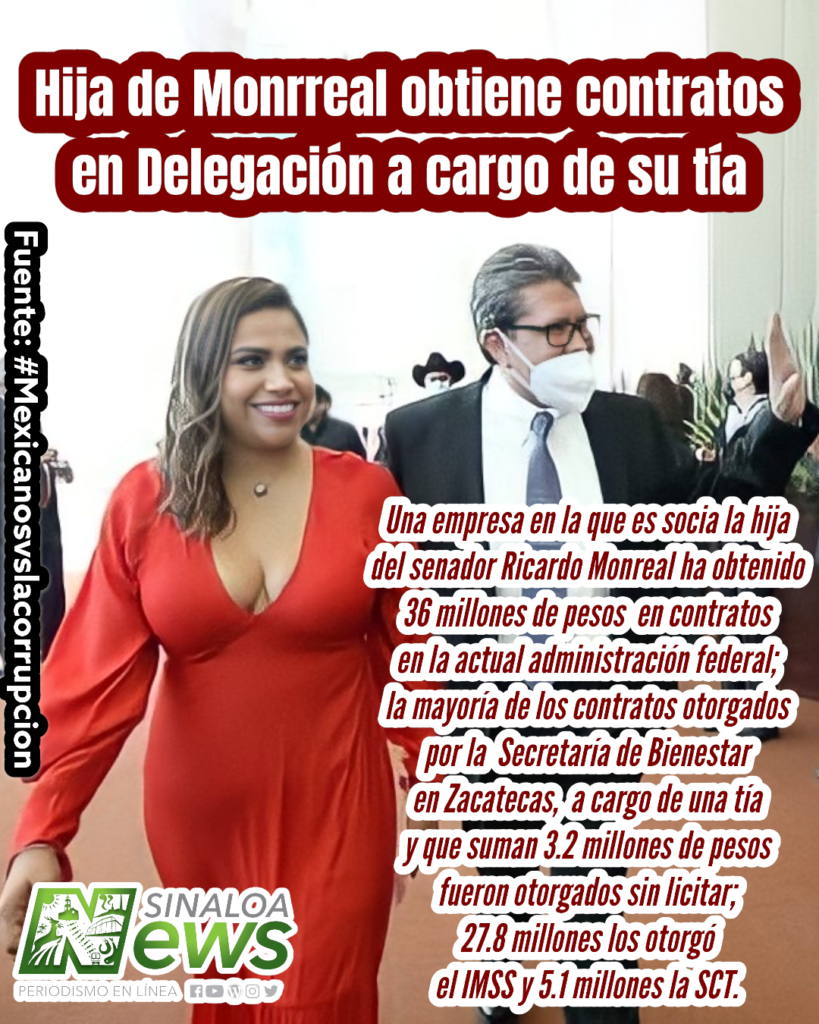 Hija de Monrreal obtiene contratos en Delegación a cargo de su tíaUna empresa en la que es socia la hija del senador Ricardo