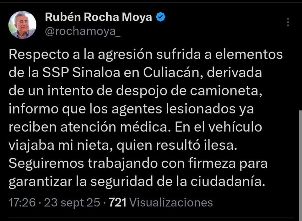 Gobernador Rocha Moya confirma que agentes lesionados reciben atención médica tras ataque en Culiacán