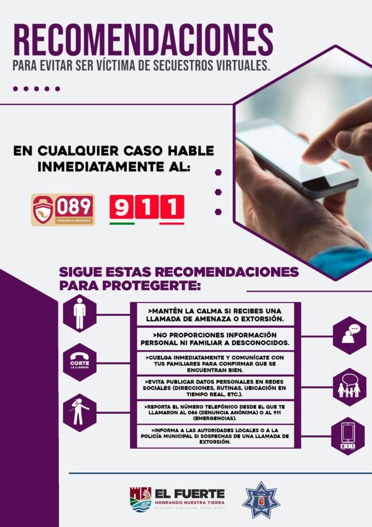 Gobierno de El Fuerte exhorta a la población a tomar precauciones ante casos de secuestros virtuales.