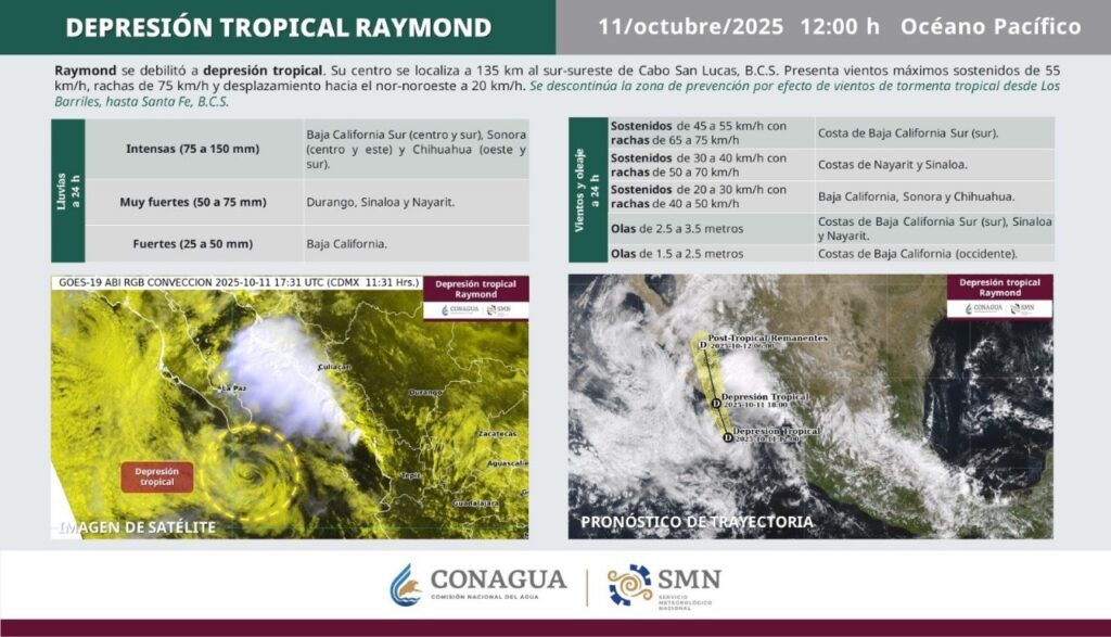 PC Ahome informa sobre Raymond se degrada a depresión tropical, pero continúa el riesgo por lluvias