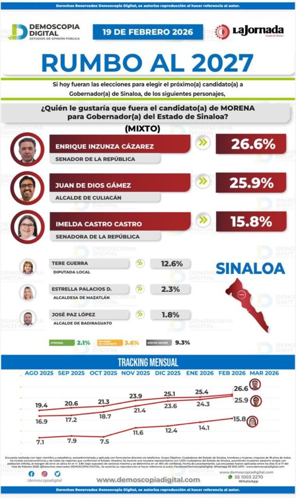 Demoscopia Digital perfila la contienda por Sinaloa rumbo al 2027 donde Morena lidera y crece más que todos Juan De Dios Gámez