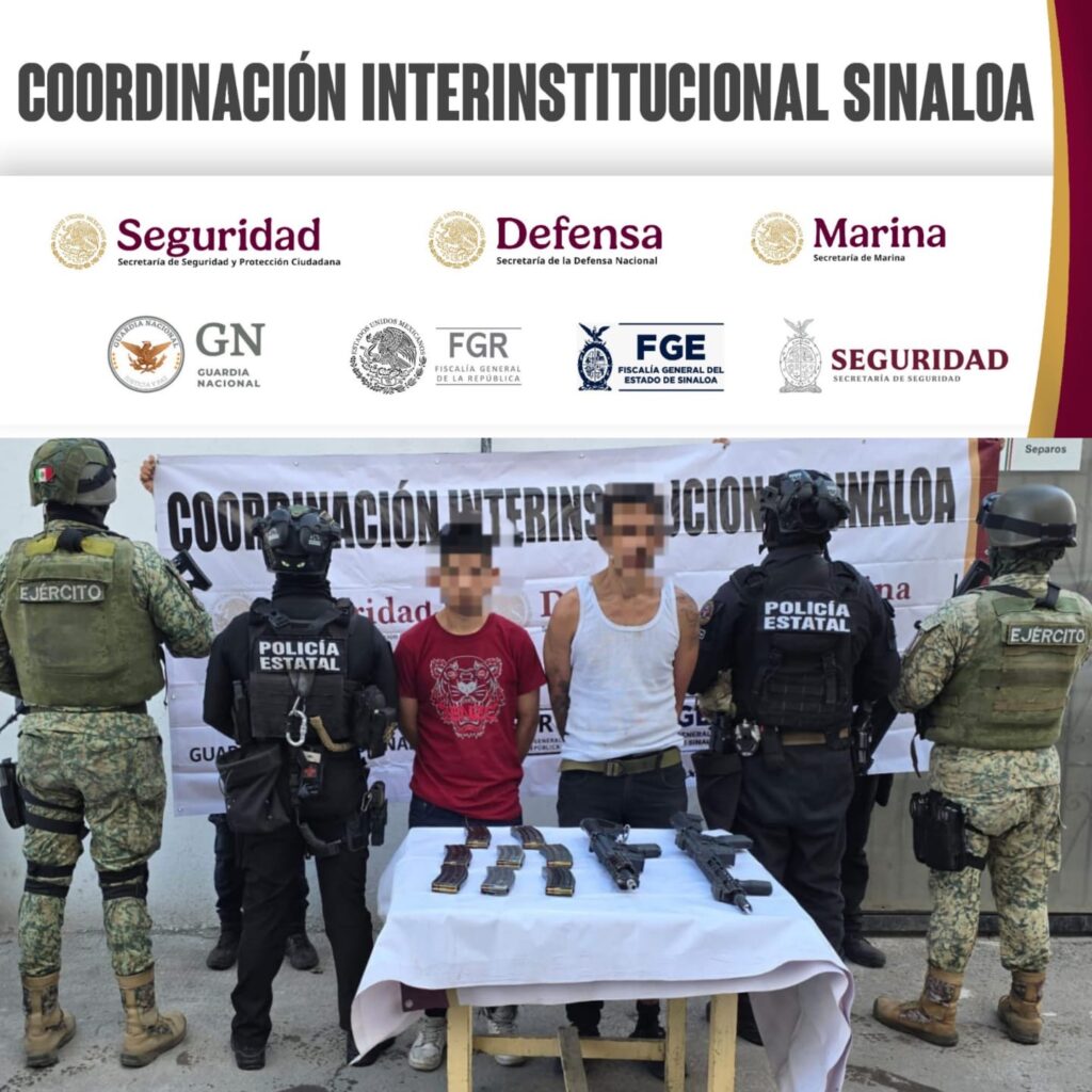 Derivado de una denuncia anónima al 089, el Grupo Interinstitucional detuvo a 2 civiles con rifles, cargadores y municiones en Escuinapa