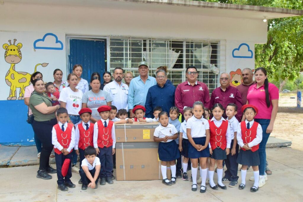 El alcalde realizó la entrega de un aire acondicionado en el jardín