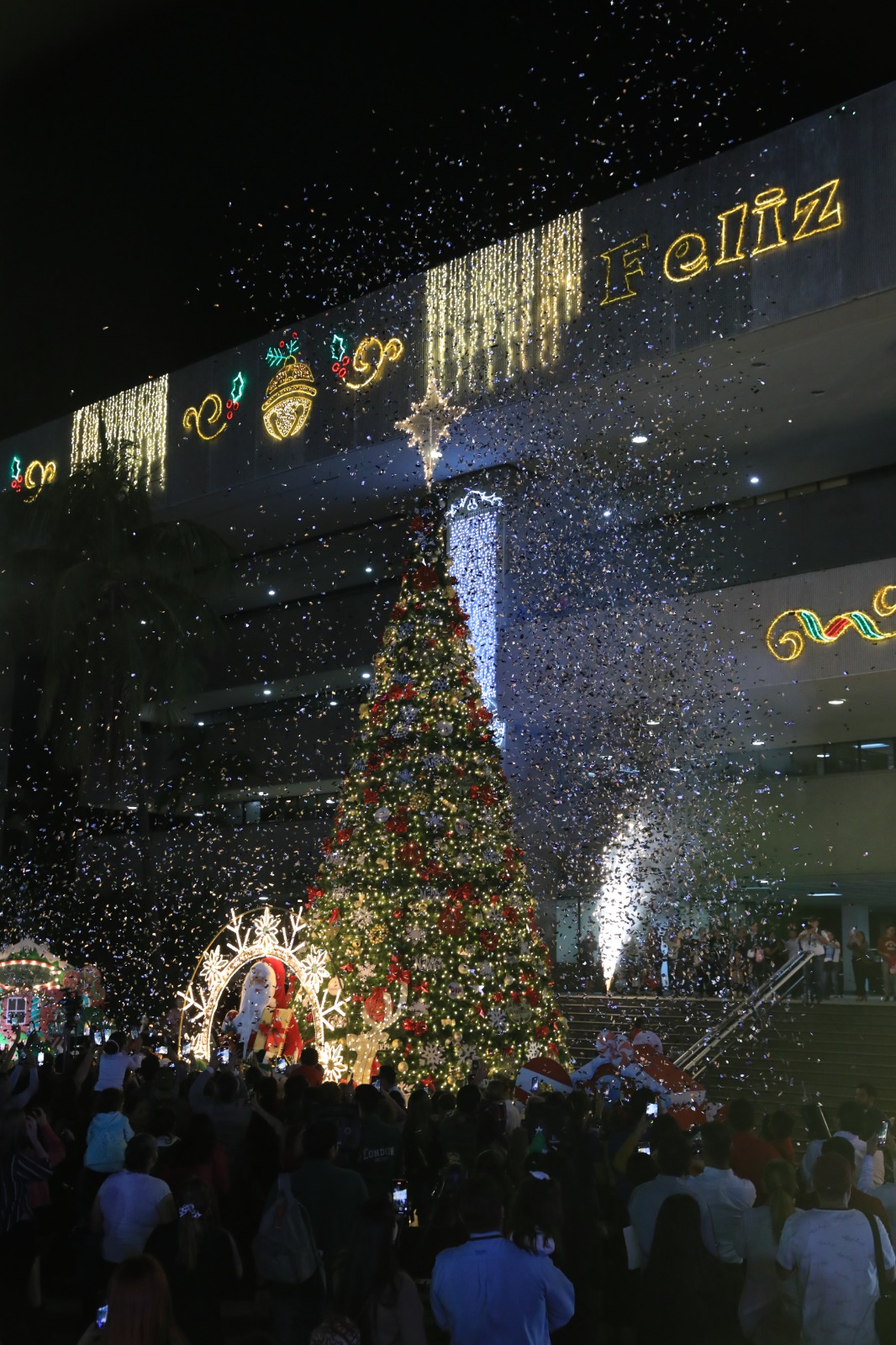 Culiacán, Sinaloa, a 13 de Diciembre de 2023.- La explanada de Palacio de Gobierno se convirtió esta tarde en el hogar de Santa Claus, donde cientos de niñas, niños y sus papás disfrutaron de una hermosa fiesta navideña cuya cúspide fue el encendido del Árbol de Navidad, por parte del Gobernador Rubén Rocha Moya y Eneyda Rocha Ruiz, Presidenta del Sistema DIF Estatal, institución organizadora de este gran evento.