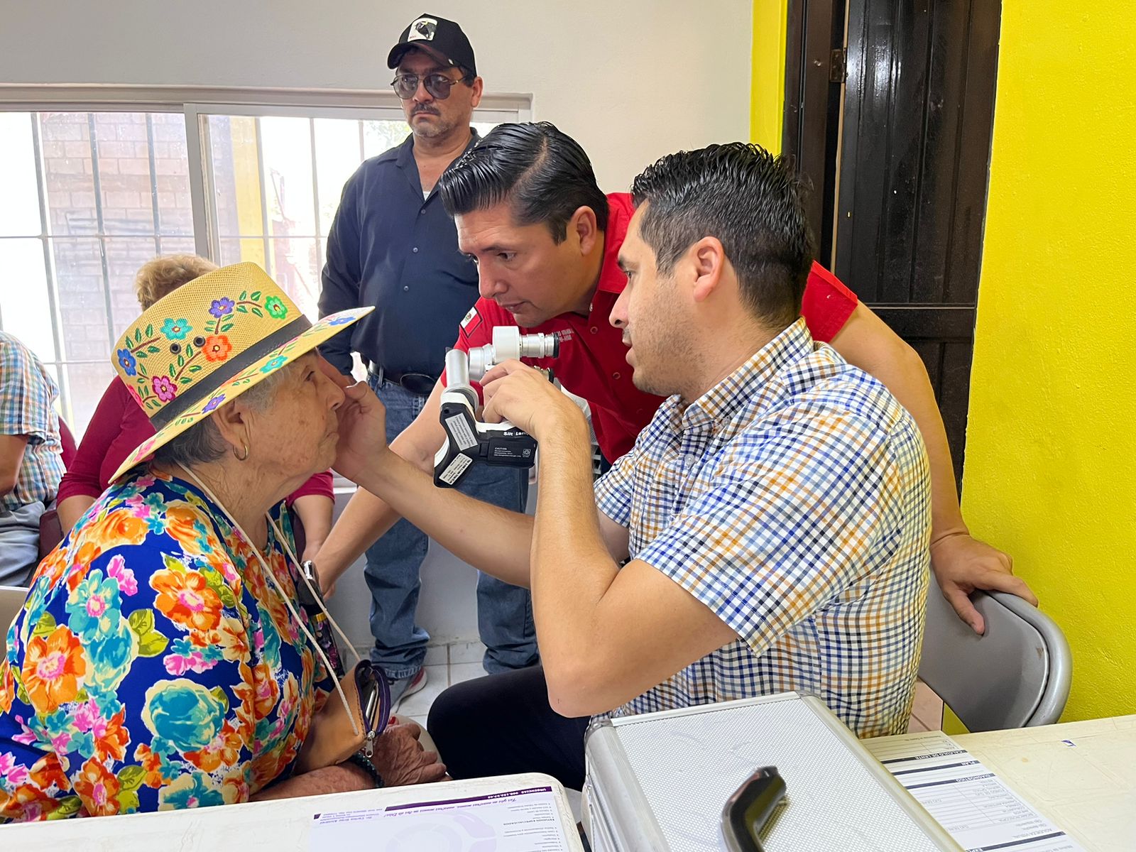 Poblado 6, Ahome, Sinaloa.-Las Jornadas Visuales del PRI Ahome, llegaron a esta comunidad ubicada al norte del municipio, en donde se tuvieron que duplicar los estudios oftalmológicos, así como la entrega de lentes de forma gratuita, para que no quede ninguna persona sin beneficiarse de este maravilloso programa, que ha venido rescatando la salud visual de los ahomenses desde hace meses.
