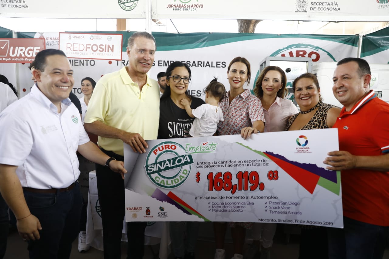 En el módulo de la Secretaría de Economía, hizo entrega de cinco cheques, los primeros tres de financiamientos de la Red Fosin a las microempresarias Magdalena Ruiz Valdez y Dora Elena Camacho Bojórquez, ambos por 25 mil pesos, para capitalizar sus negocios, un abarrote y una dulcería, mientras que al joven Brayant Valdez Aguilar, un crédito de 10 mil pesos para una boutique.
